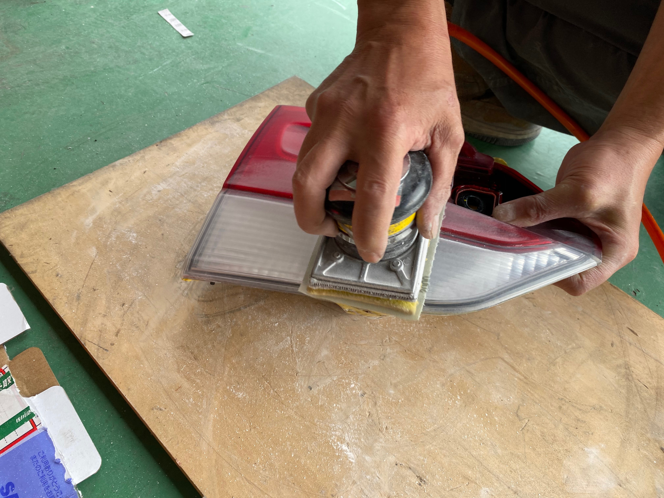 脱着後、マスキングをし、塗装前処理で足付けします。